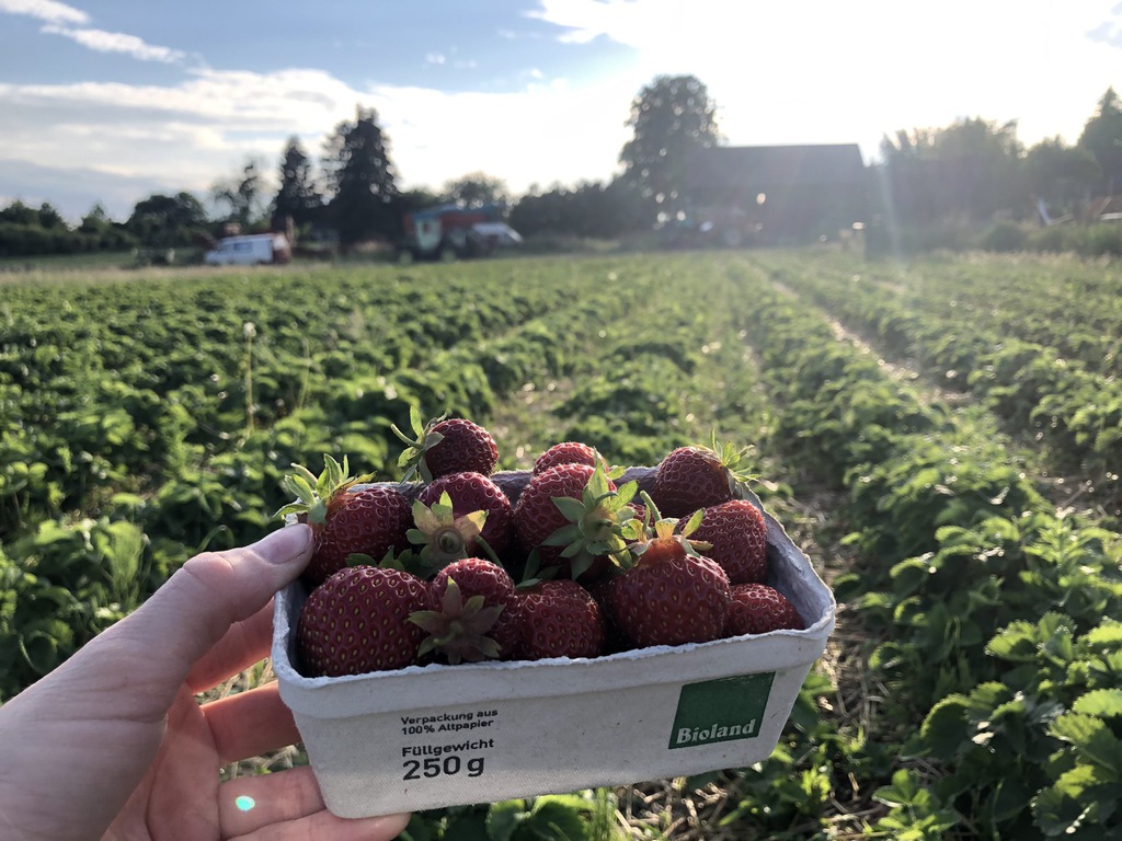Auf knapp 10 Hektar Fläche (überwiegend lehmiger Sand) bauen wir mit viel Idealismus, Handarbeit und Liebe Kartoffeln, Tomaten, sonstiges Gemüse, Erdbeeren, Obst und Kräuter an.