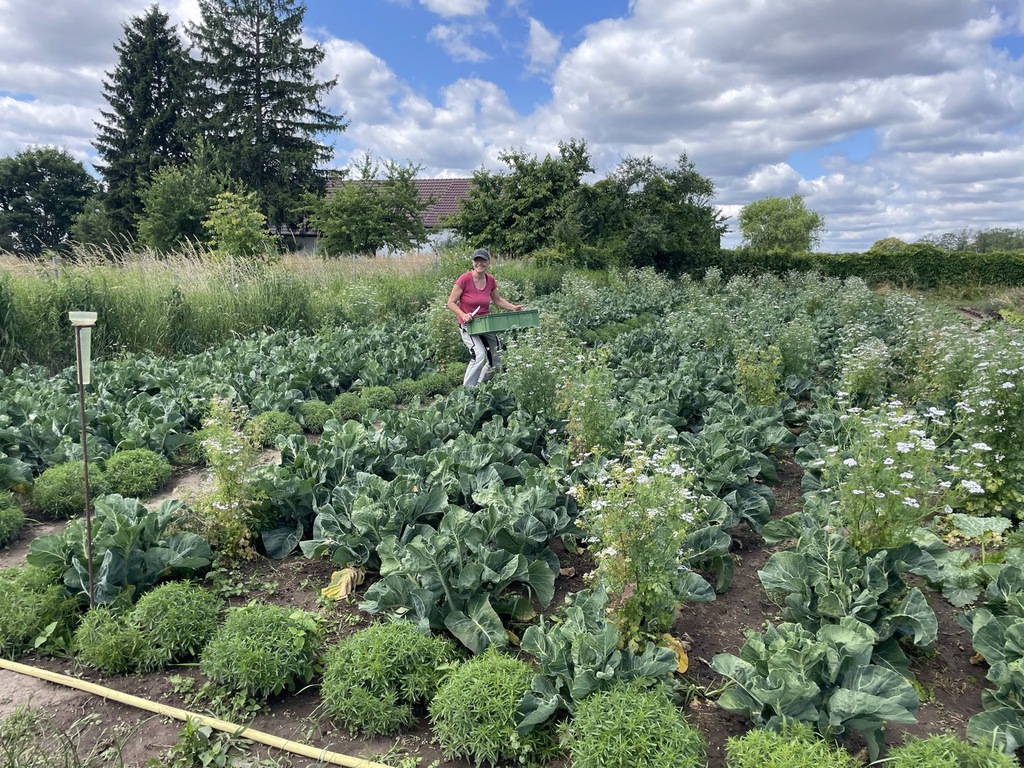 Auf knapp 10 Hektar Ackerland (überwiegend lehmiger Sand) bauen wir mit viel Liebe und Idealismus, in Handarbeit Kartoffeln, Tomaten, Gemüse, Erdbeeren, Obst und Kräuter an.
